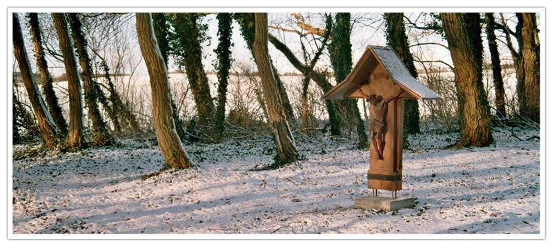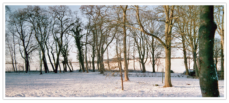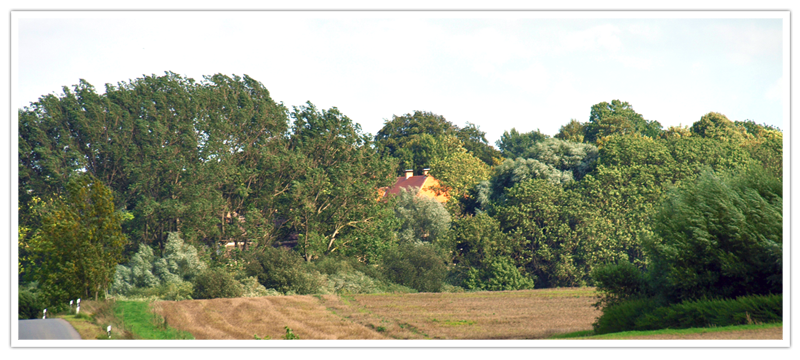 ausladenden Ästen. Linkerhand findet sich eine Gruppe Robinien